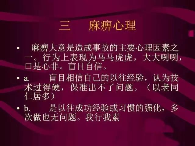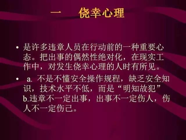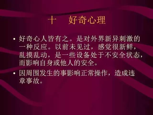 人是生產(chǎn)力中最活躍的因素,在導(dǎo)致事故發(fā)生的種種原因中,人的不安全因素是一種很重要的原因。要想搞好安全生產(chǎn),防止事故發(fā)生,必須及時矯正各種影響安全的不良心理和糾正各種違章行為。這就要求我們研究并運(yùn)用安全心理學(xué),探索人的安全心理,從而減少人的不安全因素。